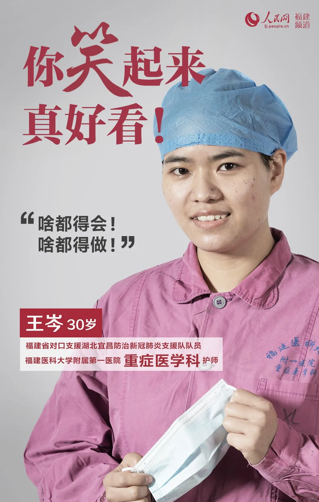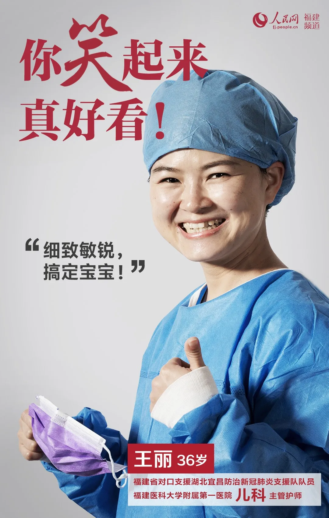 3月5日至6日,湖北省宜昌市委宣传部、宜昌市文联组织市摄影家协会为274名援宜支援队队员“画像”,用镜头留下“白衣战士们”的最美瞬间。人民网福建频道特制系列海报“你笑起来真好看”,致敬奋战在战“疫”一线的女性医护工作者,三八妇女节快乐!