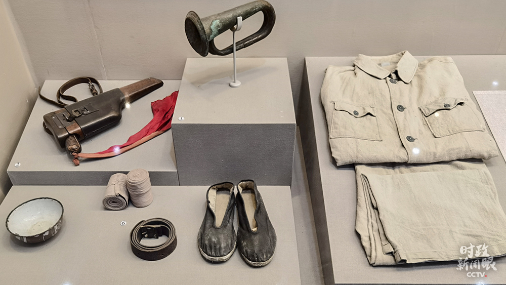 △纪念馆里陈列着新四军的枪套、军号、军鞋等。(总台央视记者张淳拍摄)
