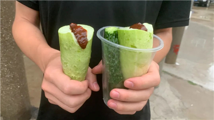 △落坡岭村民为乘客准备的黄瓜蘸酱