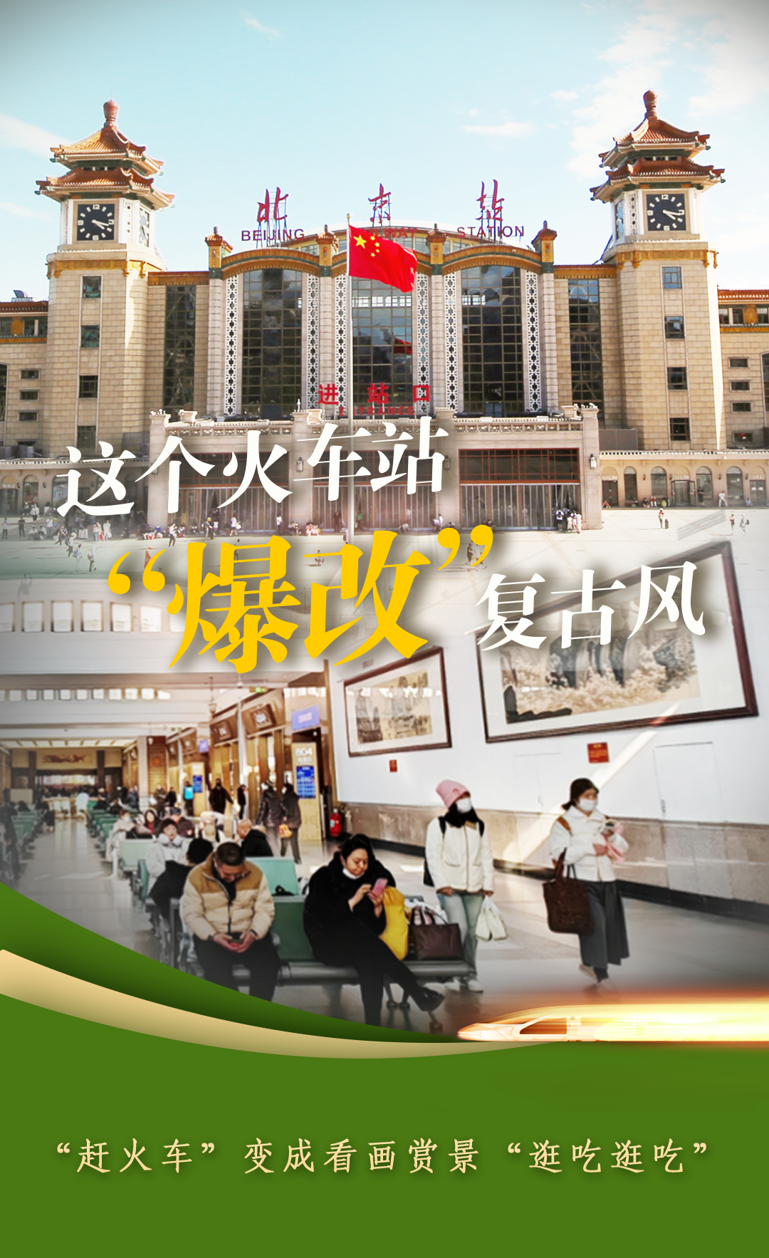 新华社北京1月11日电(记者丁静)复古风、怀旧风盛行的当下,连火车站都在变。1959年建成的北京站,装修风格回到66年前。站房外立面重现主楼历史风貌,候车室采用建站之初的绿色环形座椅风格,墙上挂起名人字画……今年春运,北京站以更文艺、更复古的方式迎接南北旅客。 走进二楼第8候车室,清新之风扑面而来。中式风格简约大气,木棕色调自然质朴,搭配草绿色座椅,大方中透着一抹活力,古朴中藏着一丝可爱。人们“赶火车”的紧张情绪一下子卸掉大半。 候车室内,一幅白雪石1978年为北京站创作的《桂林山水甲天下》吸引了几位旅客驻足观赏。 “桂林山水甲天下,白派山水甲桂林,没想到在北京站能看到白雪石这么大幅的作品。”旅客姜严军说,“他的画很生动,仿佛让我回到绿水青山的桂林。” 北京站建成后,一批大师名家纷纷向其赠画。北京站党委副书记孙海申说,北京站延续“以文化站”传统,逢五或十年组织文人“笔会”,积累了160多幅不同时期的珍贵字画。这些字画中不乏名家大作,如李苦禅的《盛夏图》、许麟庐的《荷花鳜鱼》等。 “这些都是‘无价之宝’。”位于北京市著名文化街琉璃厂的汲古阁古画装裱师韩俊说,修复古画要经历揭裱、清洗、裱画、补色、上框等9道工序,少则八九天,多则几十天。虽然辛苦,但韩俊觉得这个工作意义重大。名家画作装点了车站的文化味,也陶冶着旅客的文化心。 目前修复完成的19幅画已经在各个候车室与旅客见面,北京站还将陆续更换新画,让更多“大作”与百姓见面。 为了突出文化味,北京站撤除商业点位约40处,精选出独具北京特色的商铺。故宫文创、北京礼物、全聚德、吴裕泰……让人一看就知道是在北京。 店铺中的商品又与世界接轨。土耳其面包、俄罗斯巧克力、韩国面膜、法国香水,都可以在免税店里找到,价格也很有优势。 走到候车室顶头,拱顶式玻璃幕墙透出柔和的自然光线,让人眼前一亮。窗外影影绰绰的城墙,烘托得北京站文化味儿更浓了。 “我们在这里增加了座椅和充电设备,旅客很喜欢在这里远眺、办公,慢慢享受北京时光。”北京站客运员吴凡讲起站内亮点如数家珍。 北京站之变折射出中国铁路之变。文化味浓了,封闭的门拆了,洗手的水热了,厕所的味没了。今年春运,全国铁路发送旅客有望突破5.1亿人次。从“走得了”到“走得好”,中国铁路正在高质量发展的道路上快步前行。(海报:胡傲霜) |