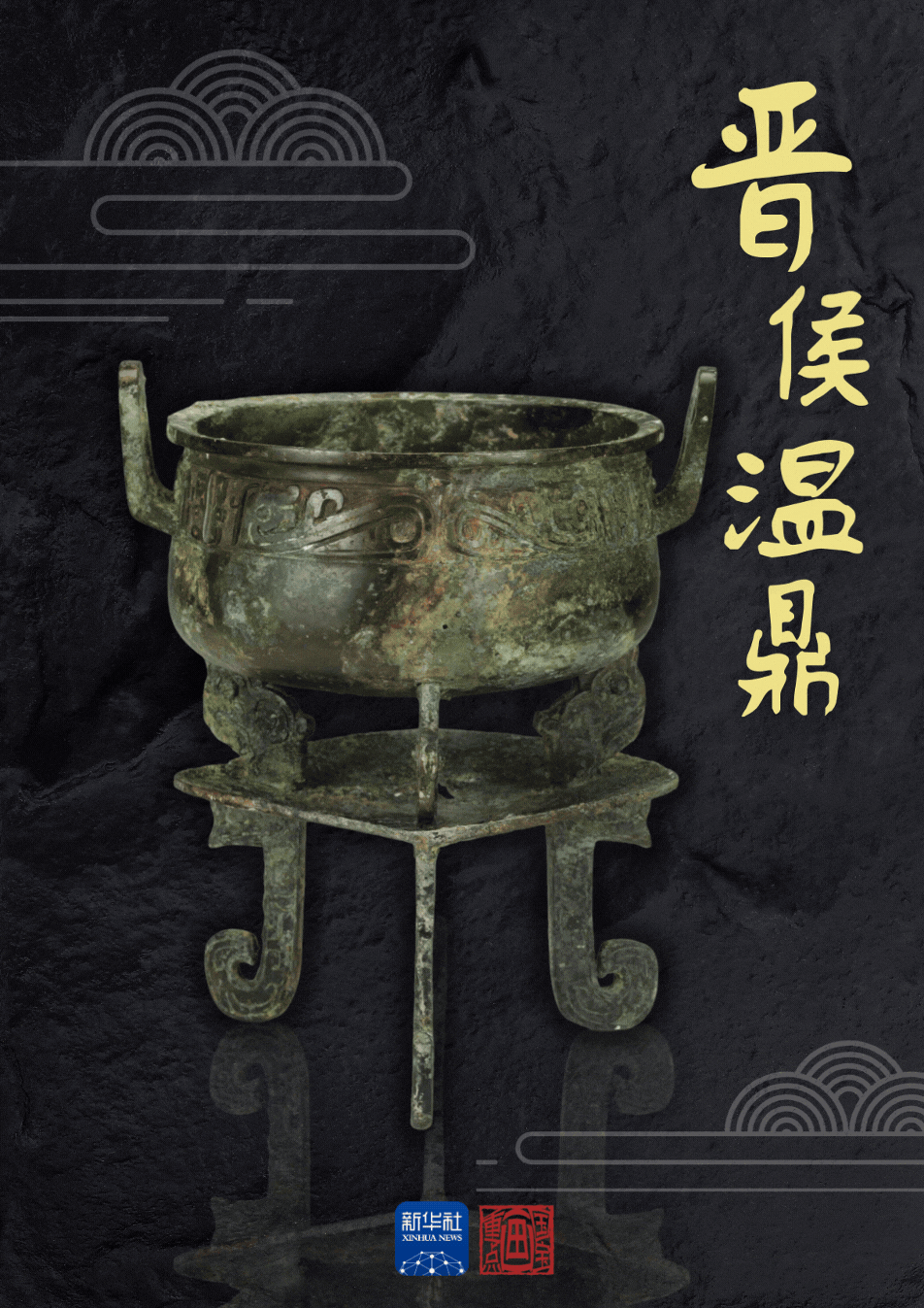 山西博物院这件非常典型的带有托盘的温鼎——晋侯温鼎,方折唇,腹略鼓,双附耳,三卷尾鸟形扁足。安婧介绍,最上方的圆形小锅,可用来盛放食物,中部的托盘用来放置炭火,托盘底部还有三个十字形镂孔,用于通风去灰。