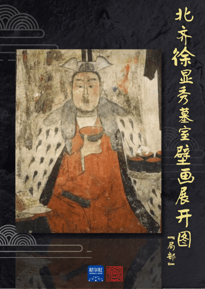 在山西太原北齐徐显秀墓室的壁画上,画着墓主人穿着银鼠裘氅的形象。黑色的鼠尾花纹整体排列,具有较强的装饰性。