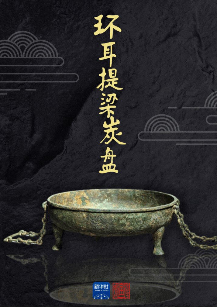 这件馆藏于山西博物院内的环耳提梁炭盘,是用于存放木炭或其他燃烧材料的容器。盘为敛口、直壁,双环形耳连接提链,下接三兽蹄足,兽蹄形足跟部线刻兽面纹。安婧介绍,古代的炭盘有时还会附有炭箕,通常为簸箕状,可以用来添加炭火,炭箕底部还有孔,以便漏灰。