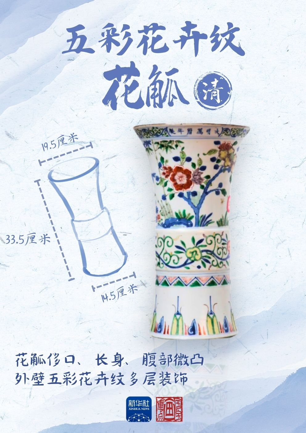 这件清代的五彩花卉纹花觚