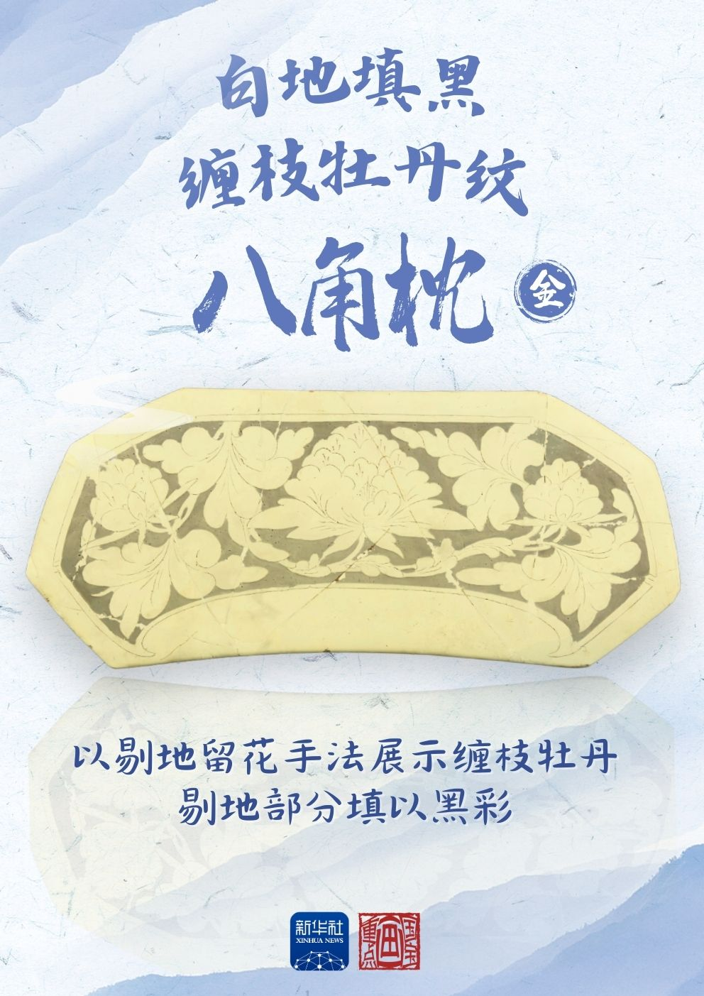 这件白地填黑缠枝牡丹纹八角枕