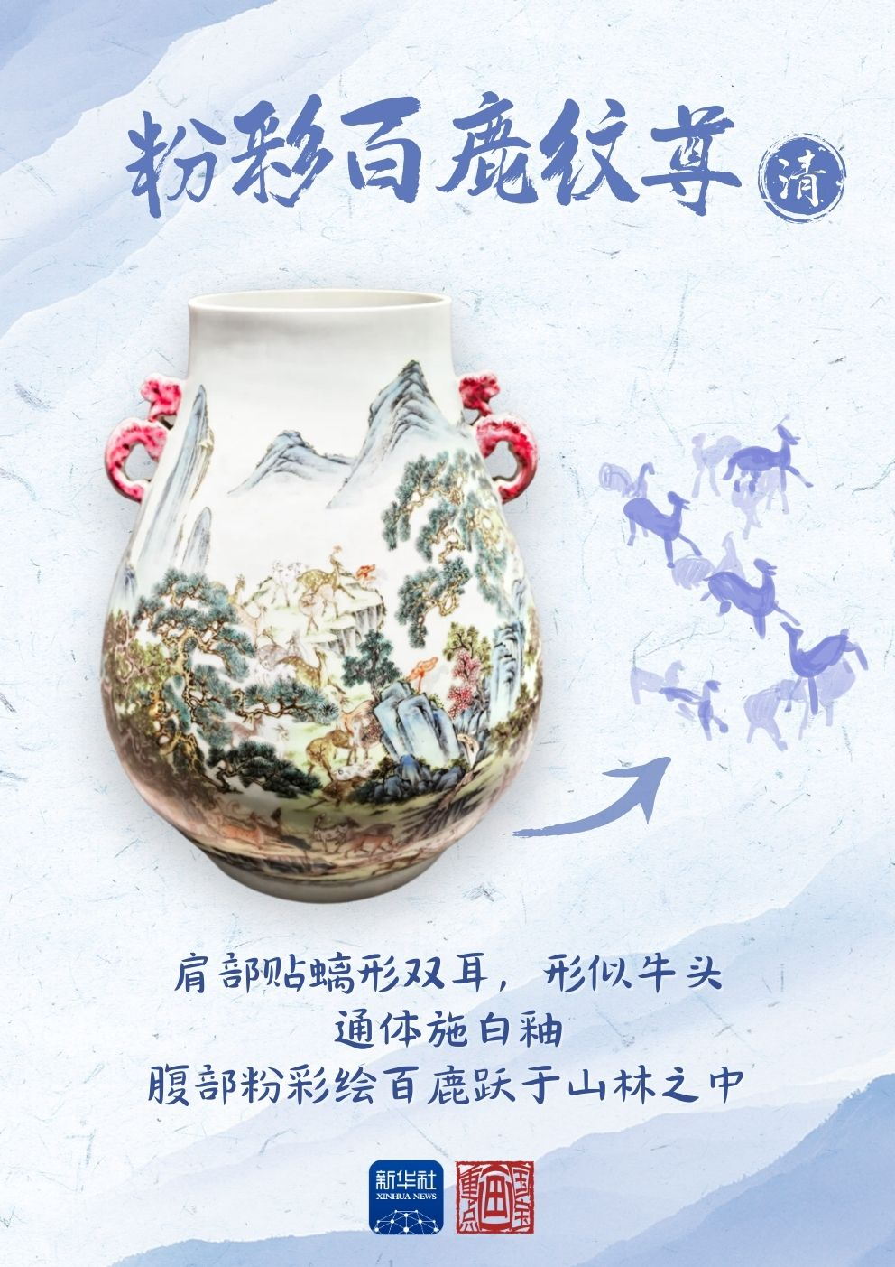 这件粉彩百鹿纹尊端庄敦厚