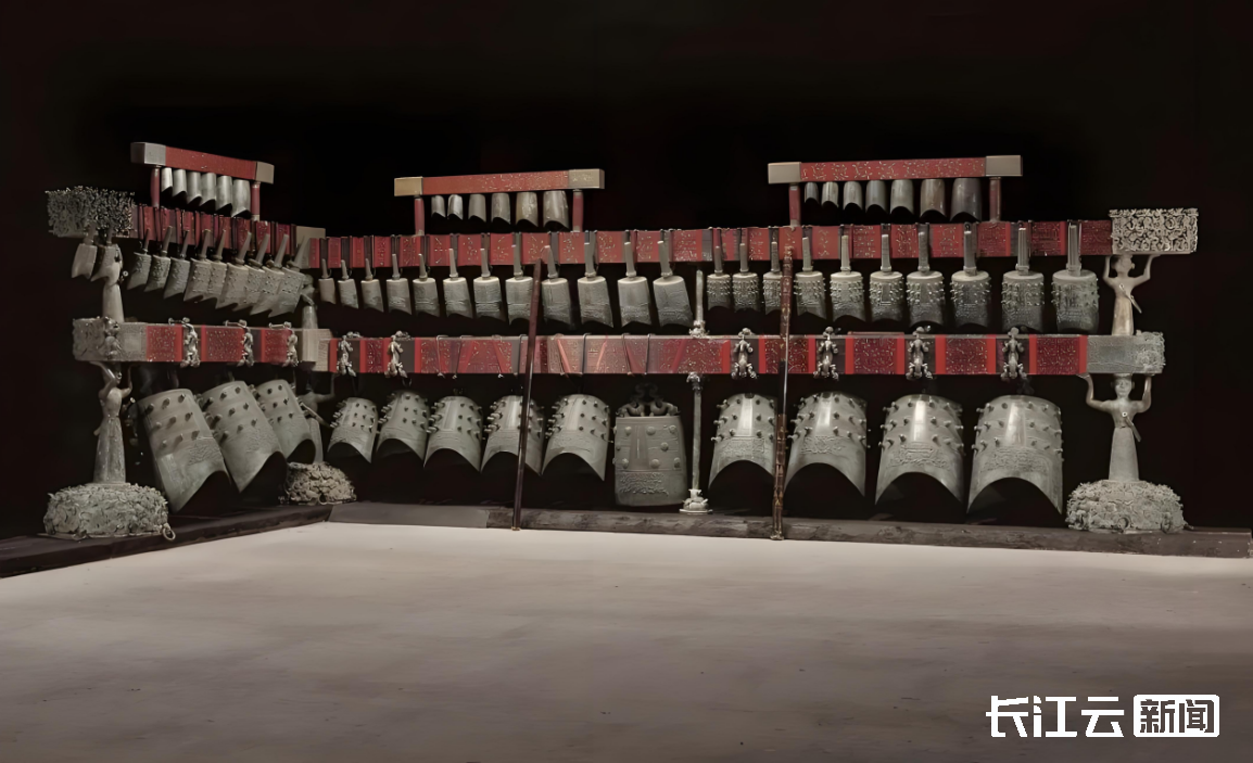 (国家非遗传承人项绍清在介绍编钟铸造工艺) 项绍清:编钟的校音打磨只能“做减法”。我们做编钟的时候,首先,它的自然音要高于我们所需要的那个音,要从高音往低音上进行打磨。编钟是一次成型的,不能进行焊接,一焊接或者断裂,这个编钟就报废了,音质就不好了。 为了研究出“一钟双音”,我会先用耳朵听,再用仪器来进行检测。当时真的吃了很多苦,做出“一钟双音”,完全靠自己,也曾一度想放弃。好在,我的夫人非常支持我,一再鼓励我,激励我,她告诉我,既然要做,那就要把事情做好、做成功、做到底。要坚持,我也是一直抱着这样的目标和信心来做的。 大概是1990年,我终于做出来了“一钟双音”,我第一个就敲给了我夫人听,当时敲了一首《东方红》,我的夫人也非常高兴,我们都激动地流下了眼泪。 让“世界记忆”走向世界、走向未来 在战国时期,曾侯乙编钟便承载着祭祀、宴会等重要功能,它是当时文化交流的重要载体。从曾侯乙编钟上,不曾出现在历史记载中的曾国揭开了神秘面纱,人们找到了曾国与楚国的关系……穿越千年,如今的曾侯乙编钟依然承担着重要的使命。 这些年,曾侯乙编钟频频出现在国际舞台上,先后出访20多个国家和地区,让全世界6亿多人通过各种途径领略了《编钟乐舞》视觉盛宴,成为一张文化交流的“金色名片”。 在湖北省博物馆,每年有近500万海内外观众来汉一睹其芳容,为其量身定制的编钟演出吸引了无数海内外游客前来打卡。而为了庆祝曾侯乙编钟入选《世界记忆名录》,编钟演出再次升级。