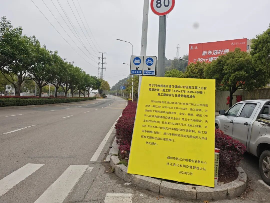 施工期间,将对路面分阶段实施交通管制。连江公路中心将严格督促施工单位执行经交通管理部门审批的交通组织方案,强化现场安全管理,确保施工与通行安全有序。