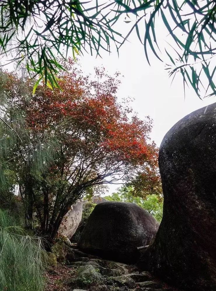 谢雨真 摄 红叶洒落在石阶、石头缝、小山包上,堆了一叠又一叠。五裂槭的枝干上,还挂着许多的红叶,有的红叶已经完全变色,有的泛黄,还有的正开始要起变化,黄叶上透着斑点的红色。这些红叶把整个山包渲染得诗情画意。