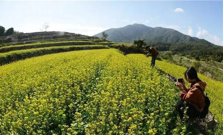 锄山村的油菜花种植在山腰上的梯田里,油菜花层层叠叠,别有一番美感。