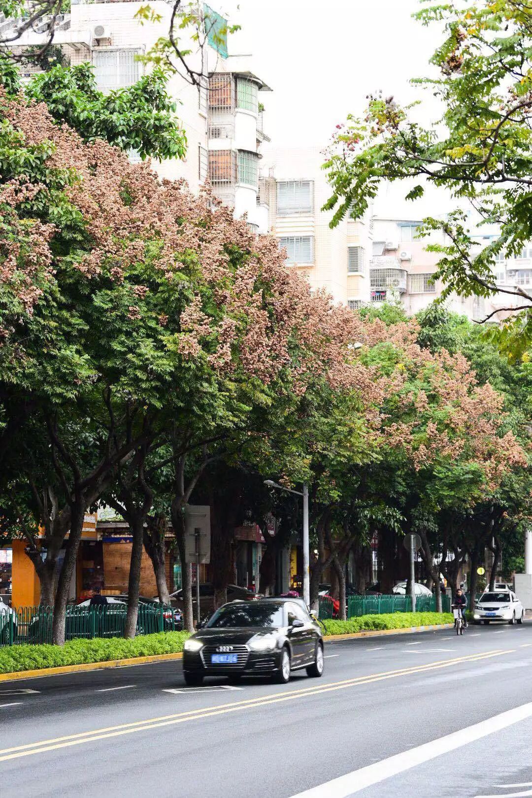 谢雨真 摄 褐 台湾栾树 赏花点:和宁路 和宁路两侧种植的都是台湾栾树,进入冬季后,这条路的色彩起了明显的变化。10月初,这里台湾栾树的色彩主要还是以黄色和红色为主,而现在已经转为褐色。