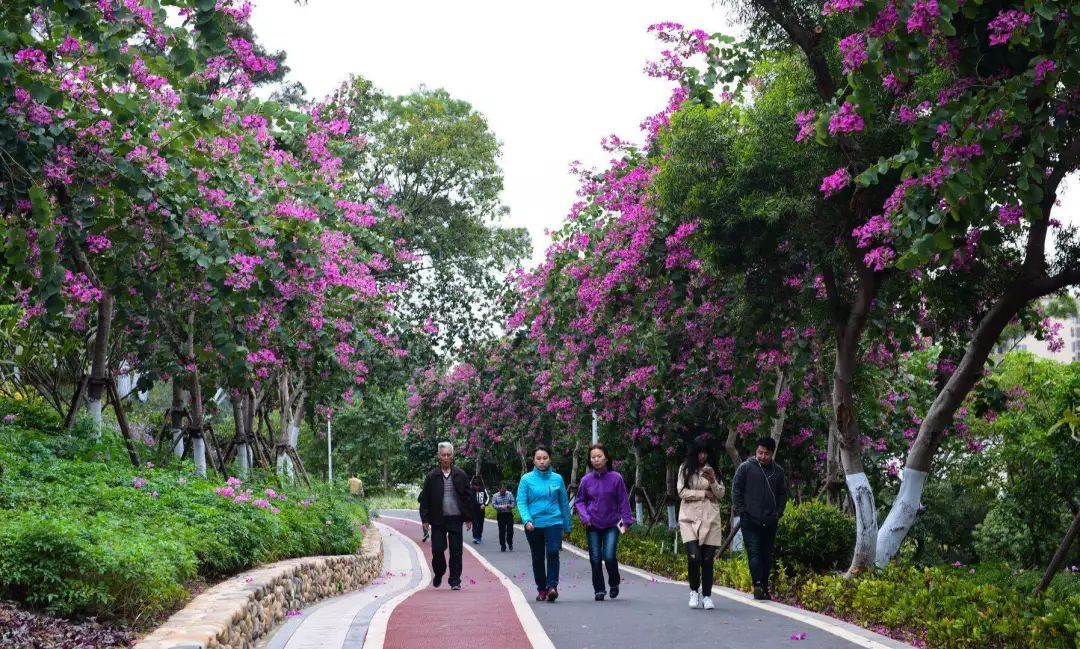 谢雨真 摄 湖滨南路、湖滨北路、禾祥西路、长青路的道路旁,都可以看到洋紫荆成片开放。