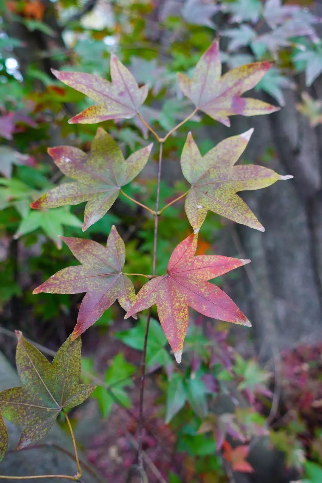 谢雨真 摄 红 五裂槭 赏花点:植物园 进入植物园滴水山房,再往里走一点,有一条石阶通往小山包。在石阶的末端,能看到几株五裂槭。它们可是摄影家眼中的“网红树”。