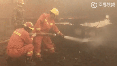 消防战士不顾恶臭,