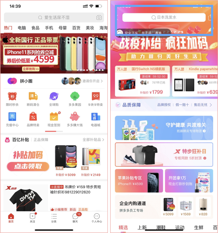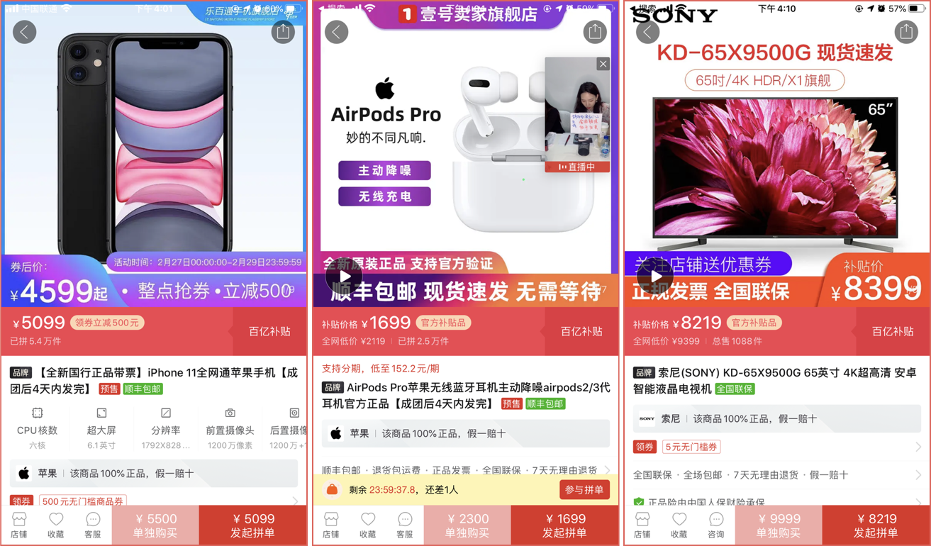 ▲“百亿补贴节”上,苹果iPhone 11手机直降 1400 元,索尼 65 英寸 4K 高清电视低于市场价4000元,史上最低价AirPods Pro耳机更是紧急补货5次。 拼多多百亿补贴负责人宗辉表示,“百亿补贴节”是在日常的百亿补贴基础上,精选包括抗疫物资在内的全品类过去两个月最热销单品,再度进行加码补贴以满足消费者复工需求。参与活动商品的补贴比例从日常的20%左右增加至最高50%,这也意味着,拼多多将用补贴让消费者享受复工期商品“最低五折”。 据了解,目前“百亿补贴节”APP首页入口在27日当天的活跃用户数已超过1.1亿,多款历史底价大牌商品“上线即秒光”。拼多多正在协调品牌商不断补货,确保不限量补贴,让所有消费者都享受“春天在家薅羊毛的乐趣”。 补贴激起复工消费潮:12小时售出5万台iPhone、2万支MAC口红 “和其他电商不一样,我们一开始就为百亿补贴节增设了搜索功能”,宗辉表示,“为了方便消费者更快购买想要的补贴商品”。 据行业人士介绍,此前其他电商平台的购物节往往不设搜索功能,原因在于其打折商品品类有限,只是将打折作为引流功能。而据宗辉介绍,拼多多此次的“百亿补贴节”将覆盖全类目搜索排名靠前的所有热销商品,因此专门设计了搜索功能,方便不同消费者都能轻松享受“全网最低价”。