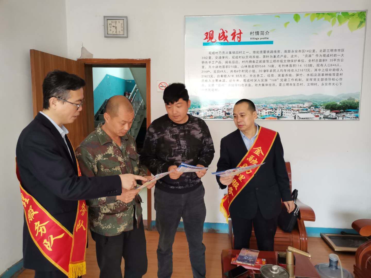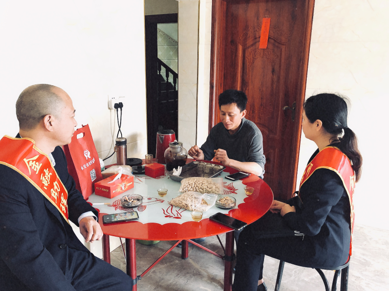 贡川信用社主任邓士发带领金融助理披上鲜红的绶带,集中时间开展入户调查和走访摸排,结合制定的“走访作战图”,向村民特别是受疫情影响较大的困难户解读、宣讲金融政策,了解农户的资金需求、备耕计划、销售方向等,掌握第一手信息。根据工作台账和档案资料,邓士发列出扶持清单,为农户量身制定授信方案。