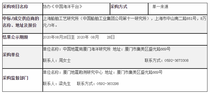 协办《中国海洋平台》采购结果公告