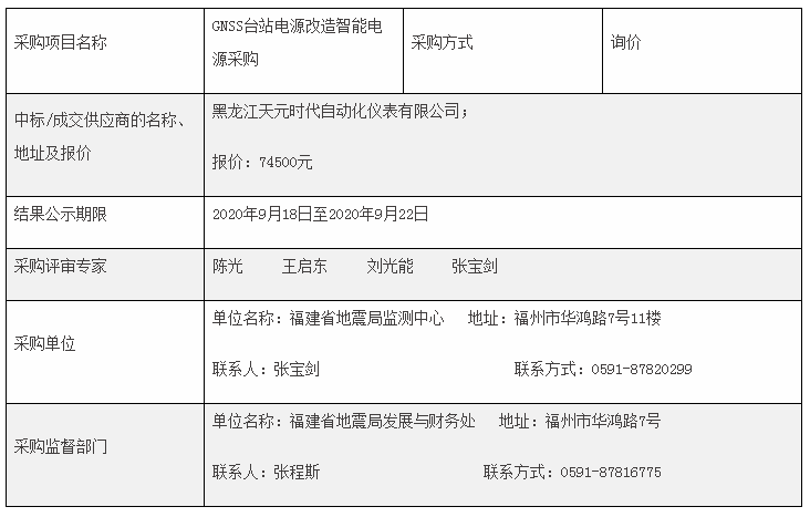 监测中心GNSS台站电源改造智能电源采购结果公示