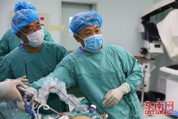 伍先生体检发现直肠有点问题,不排除局部有癌变,2015年11月9日,伍先生入住昌吉州人民医院肿瘤科,卢医生和肿瘤科刘恒山、李赟两位医生一道,组织消化内科、普外科、病理科、放疗科等10余个相关科室主任及专家进行多学科讨论,制定了详细的手术方案。11月13日上午,卢星榕与肿瘤科医师密切配合,在纤维结肠镜定位下,为伍先生实施了腹腔镜辅助低位直肠前切除术,因患者体重近90Kg,重度肥胖,靠着顽强的毅力,手术历时6个多小时后顺利完成。腹部只有一长约5cm的小切口,而传统开腹切口需长达20-25cm。卢医生此时才感到饥肠辘辘、眼疼腿酸。伍先生当天就已饮水,术后3天便恢复了正常饮食。
