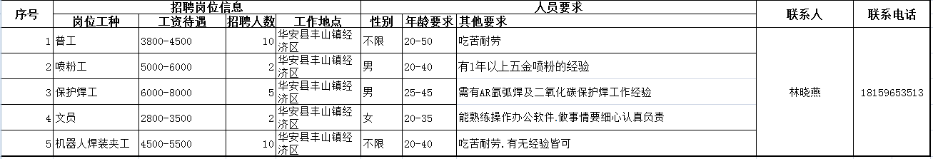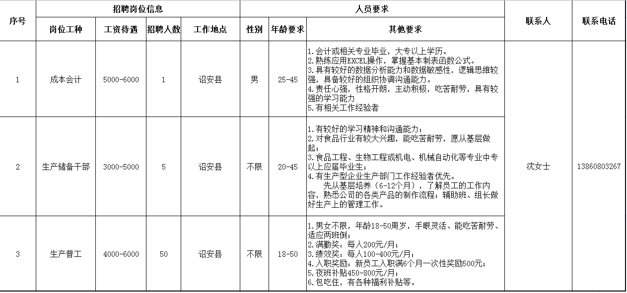 招聘企业信息如下: (可下载表格查看详细信息) 一、福建合口味食品工业有限公司 企业简介:福建合口味食品工业有限公司依托于深圳市合口味食品有限公司平台,2009年斥资1.2亿在富有“中国海峡硒都”、“长寿之乡”美誉的福建诏安建立生产基地,基地工业园占地205亩,生产车间4万平方平。公司始终秉承“真爱真品质”的企业理念、“爱心赋食品、食品如人品”的经营理念,主要生产包子、馒头、花卷、云吞、水饺、汤圆、粽子等冷鲜速冻食品。以无添加香精色素为生产标准,以中国传统餐厨美食工业化为己任,追求速冻冷鲜食品研发与技术革新,并在行业内率先通过SGS-ISO22000管理体系认证。荣获“深圳市农业龙头企业”、“首届深圳老字号企业”、“福建省农业产业化龙头企业”、“诏安纳税大户”等荣誉称号。 企业地址:福建诏安县深桥镇雨亭168号