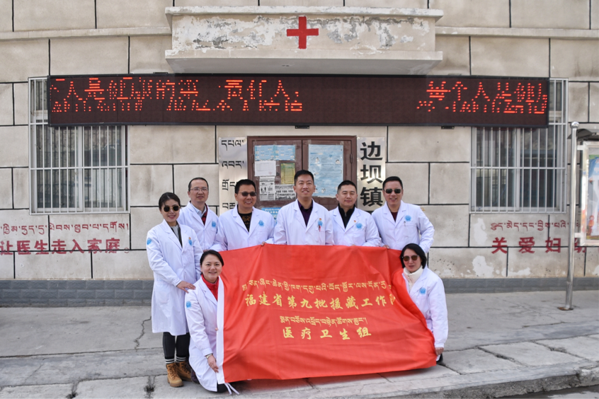 清明节期间,福建省第九批援藏工作队医疗组的刘达宾、沈传梅、翁险峰、郑鑫、张琰君、刘春雹、郑庆燕、念其钱8位医生,行车400多公里,翻越数座大山,来到海拔4000米的边坝镇卫生院,为农牧民开展义诊及赠药活动。