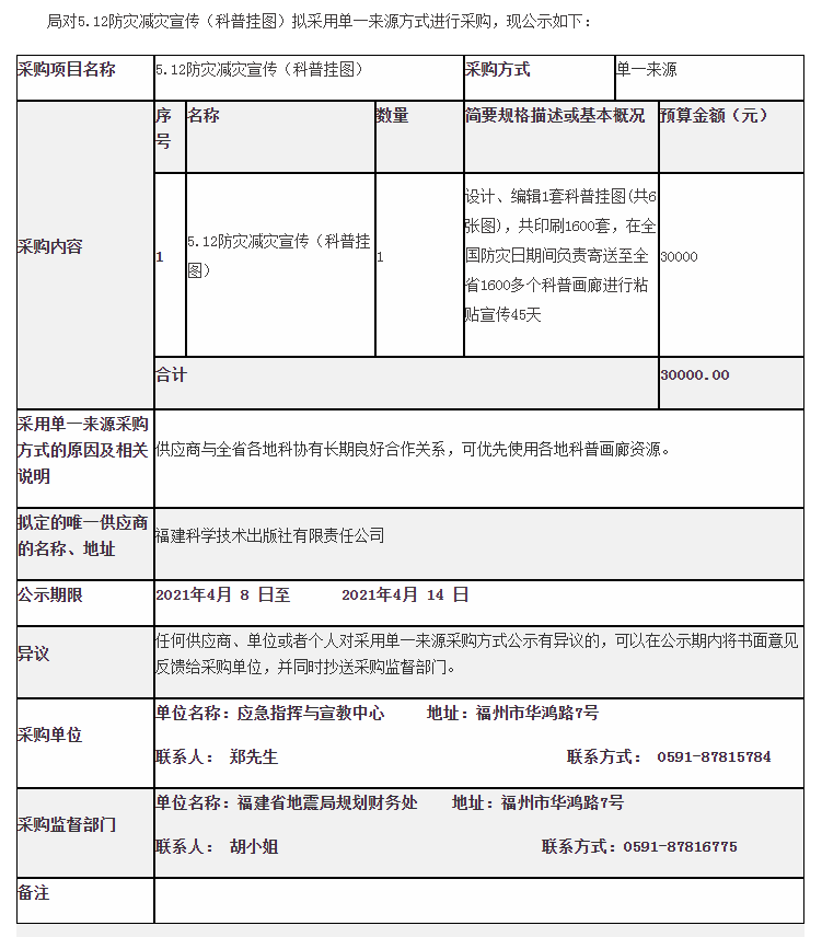 应急指挥与宣教中心5.12防灾减灾宣传(科普挂图)采购公示