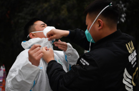 1月7日,西安市雁塔区退役军人志愿突击队队员李龙(右)协助队员吉存胜穿上防护服。 西安市本轮疫情发生以来,在防控压力较大的西安市雁塔区,有支退役军人志愿突击队活跃在疫情防控一线。 曾戍守边疆多年的战士、曾纵横蓝天的女空降兵、刚退役的大学生士兵……在西安市雁塔区退役军人事务局发出招募信息后,许多退役军人第一时间响应,加入疫情防控战。 近半个月的时间里,已有超过600名退役军人报名参加志愿突击队,承担转运抗疫物资、运送核酸检测样本、协助社区管理等工作。 新华社记者 张博文 摄影报道 |