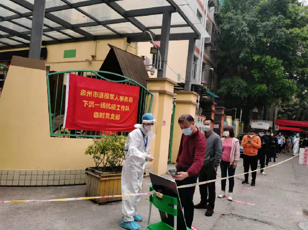 “紧急救助利索,值守防护规范,任务一旦分解,总是最快落实。” “这几天,他们每天坚持到凌晨2点多回家,与部队军人唯一的区别就是没穿军装。” 连日来,泉州市鲤城区开元街道的干部纷纷点赞抗疫中这支特别靓丽的队伍,这是由退役军人蔡海洋组织的街道退役军人志愿服务队。3月13日,泉州城区出现疫情的第一时间,44岁的开元街道退役军人服务队队长蔡海洋疾速发动81名退役军人,分成14支小分队,当天分赴各个社区核酸检测点投入抗疫。 “若有战 、召必回”!在我省新一轮疫情防控阻击战中,与鲤城区一样,各级退役军人事务部门纷纷发动退役军人组成抗疫志愿服务队,全力守护安全防线,成为各地抗疫的“硬核力量”。 这是一阵阵非常时期的“集结号” “带队的是一名军转干部,曾经担任市疫情防控督导组组长,他带着一支精干队伍下来,大家原本高度紧张的心情马上得以纾解。”3月22日,谈起这几天抗疫历程,泉州市丰泽区东湖街道松林社区的干部纷纷激动地提到这名军转干部——泉州市退役军人局局长唐良元。 泉州市丰泽区是这一波疫情主战区,来势凶猛,很多社区人员力量告急。唐良元火速带着41名精选的干部,穿上防护服,下沉到人员流动极大的松林社区第一线。进驻第一天就成立疫情防控指挥部,在社区统一安排下,下设5个工作组,主动亮旗帜、亮身份、比担当、比作为,不分昼夜配合开展核酸检测、摸排流调、隔离管控等工作,这支队伍指挥有力、运转有序、服务有效,为社区疫情防控筑起“防护网”。
