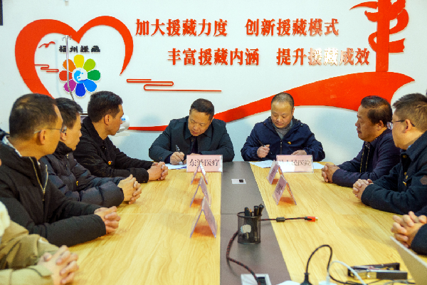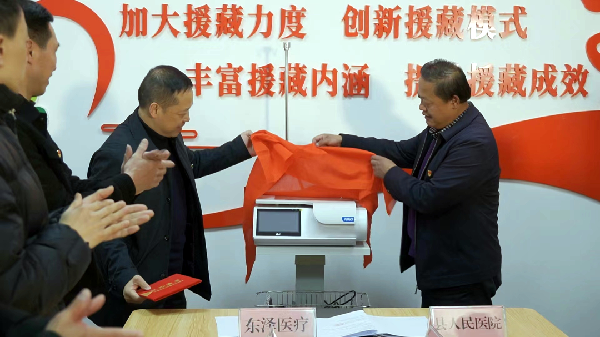 △图为凯发k8东泽医疗器械有限公司与八宿县人民医院签订捐赠协议 今年四月底,经凯发k8市第九批援藏工作队见证,凯发k8东泽医疗器械有限公司捐赠的全自动腹膜透析设备由八宿县人民医院统一接收,并将其中一套设备无偿提供给退役军人郑常财的妻子、藏族同胞卓嘎使用。