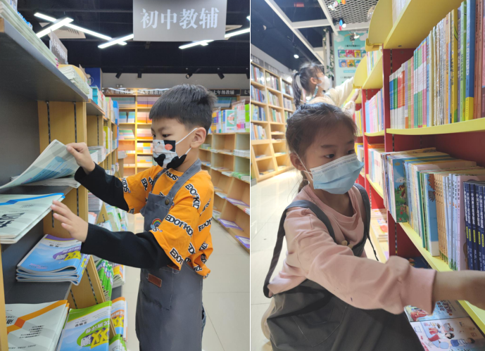 此次活动先从“小小图书管理员”职业体验开始,通过播放新华书店店史纪录片,让孩子们了解新华书店的历史,学习专业的图书知识,体验门口迎宾、图书整理、文明劝导等工作,做一名合格的“小小图书管理员”。