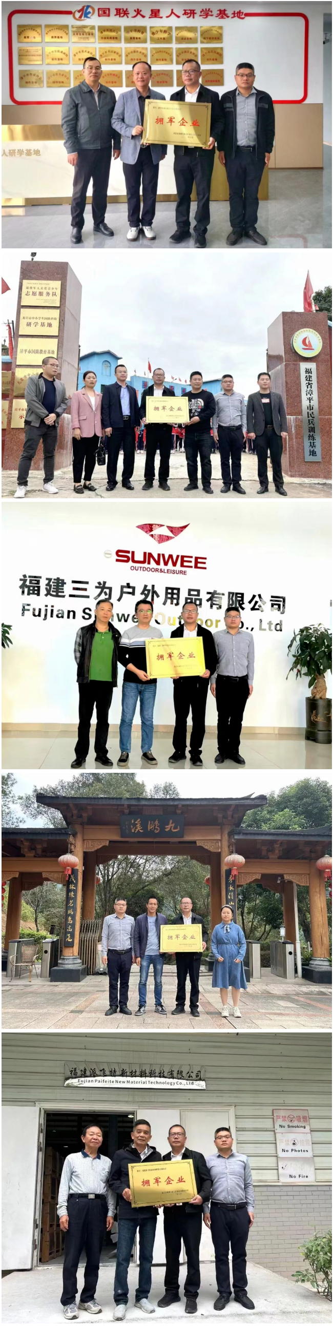 为动员企业和社会组织为退役军人及其他优抚对象提供优先、优惠、优质服务,营造漳平全市双拥浓厚氛围,提升军人军属、退役军人及其他优抚对象的获得感、自豪感和幸福感。11月15日,漳平市退役军人事务局有关负责人,为漳平野狼文化传播有限公司、漳平市嘉佳科技有限公司、漳平市九鹏溪生态旅游发展有限公司、福建三为户外用品有限公司和福建派飞特新材料科技有限公司等5家龙岩市级拥军企业进行授牌。