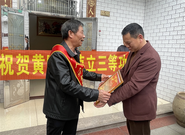 龙文区退役军人事务局分管负责人为黄鹏辉父亲送上三等功喜报