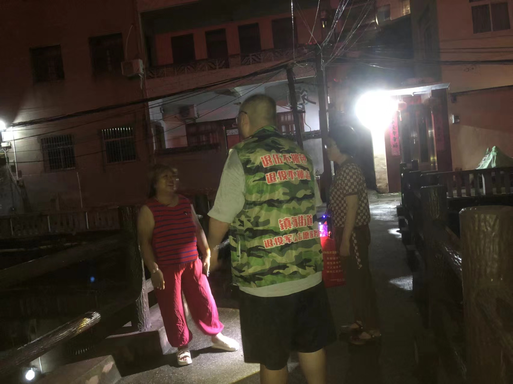 镇海街道长寿社区退役军人志愿者巡查低洼地群众,向他们宣传防汛安全知识,提高他们的避灾避难意识。 新度镇新度社区退役军人志愿者协助开展安全隐患排查,对危险地段、危旧房屋张贴警示牌,转移安置低洼地带群众5户15人。 西天尾镇三山村退役军人志愿者针对滑坡风险点和易涝低洼地带,重点开展风险隐患排查,筑牢安全屏障。