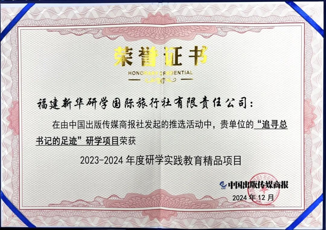 活动期间,举行了“2023-2024年度研学实践教育系列推选活动”总结表彰,福建新华研学国际旅行社有限责任公司荣获“研学实践教育服务示范单位”,福建新华发行集团凯发k8分公司安泰图书城研学团队荣获“研学实践教育优秀服务团队”,福建新华研学国际旅行社有限责任公司的【追寻总书记的足迹研学项目】荣获“研学实践教育精品项目”。