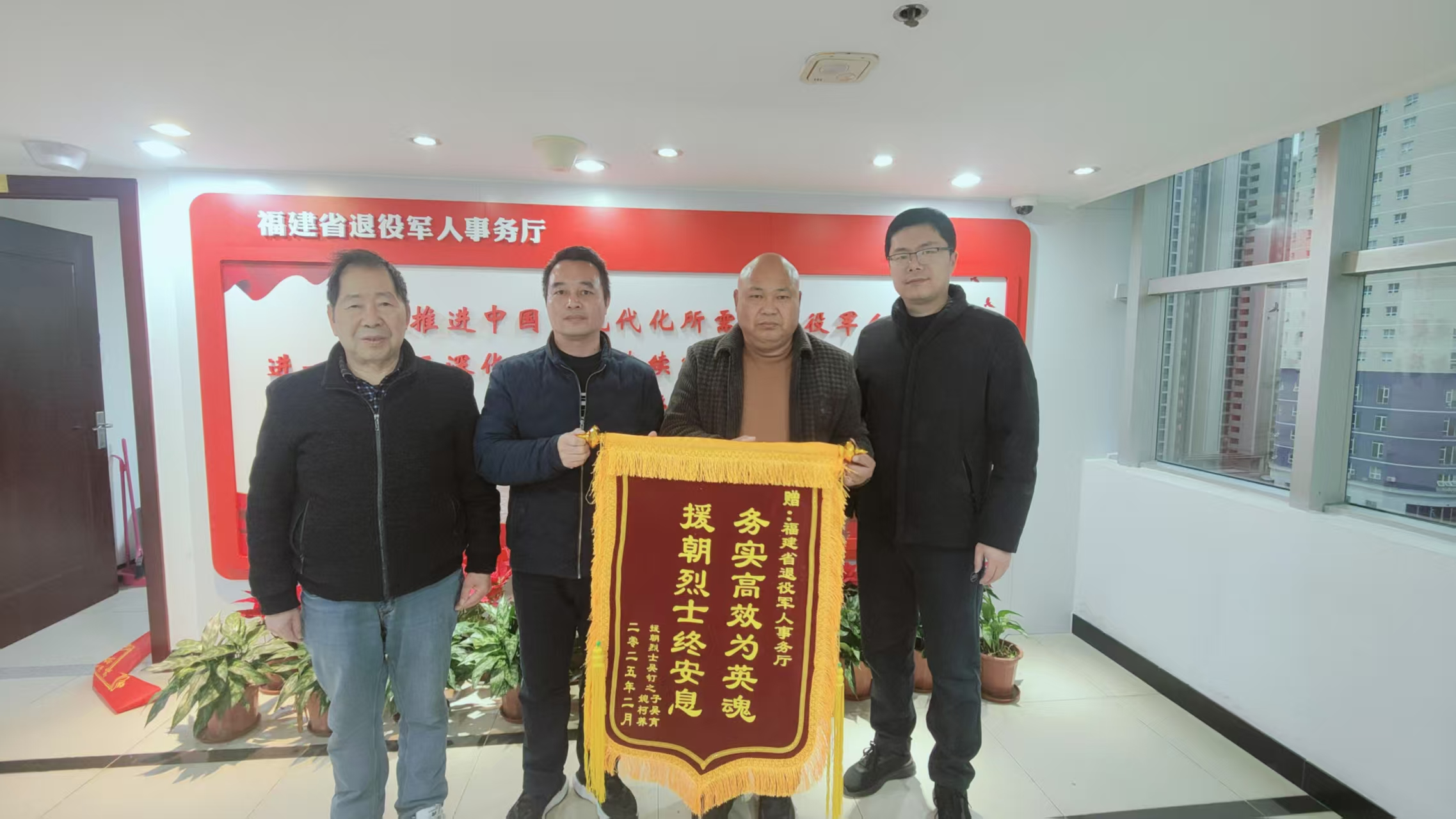 “非常感谢福建省退役军人事务部门的大力帮助,让我的堂兄吴育一家实现了75年的心愿。”2月19日,抗美援朝烈士吴钉的亲属章聪发从泉州安溪县专程来到凯发k8,将一面印有“务实高效为英魂 援朝烈士终安息”的锦旗送到省退役军人事务厅优抚褒扬处相关负责人的手中,表达堂兄吴育及其家人的感激之情。