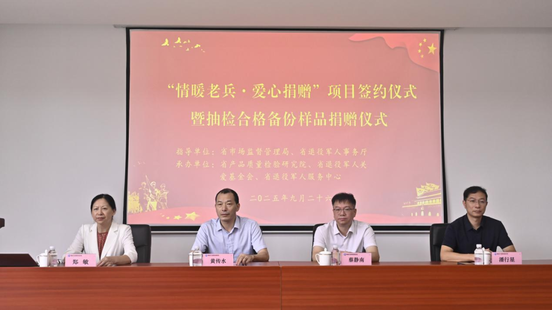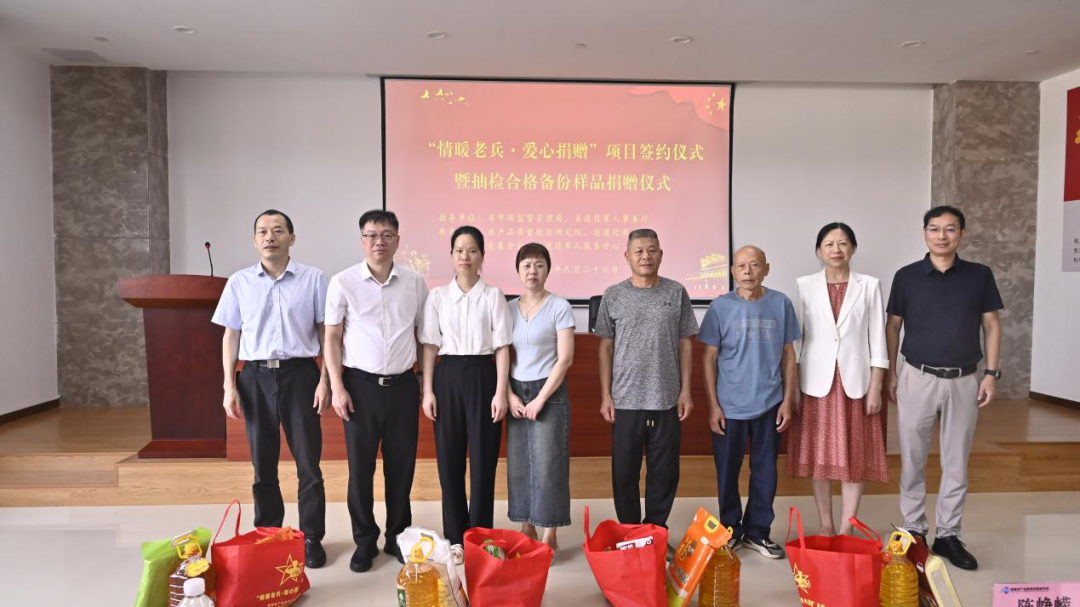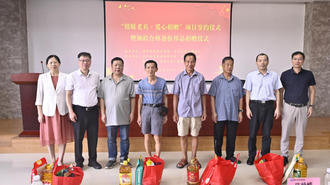 据了解,这一项目是省市场监督管理局委托省产品质量检验研究院,与省退役军人事务厅建立物资捐赠、发放渠道,按季度向省退役军人关爱基金会捐赠抽检合格备份样品,并作为面向全省退役军人及其他优抚对象走访慰问物资的公益活动。签约仪式上,省产品质量检验研究院与省退役军人关爱基金会正式签订捐赠协议,明确捐赠形式、捐赠流程及物资发放等工作,确保捐赠活动公开、公平、公正。首批捐赠物资以米、粮油、调味品等消费品类为主,总价值约10.8万元。 蔡静南、黄传水等领导见证签约仪式,并向马尾区部分烈属及退役军人代表送上慰问物资,用实际行动在“9·30”烈士纪念日前向退役军人及其他优抚对象表达敬意。