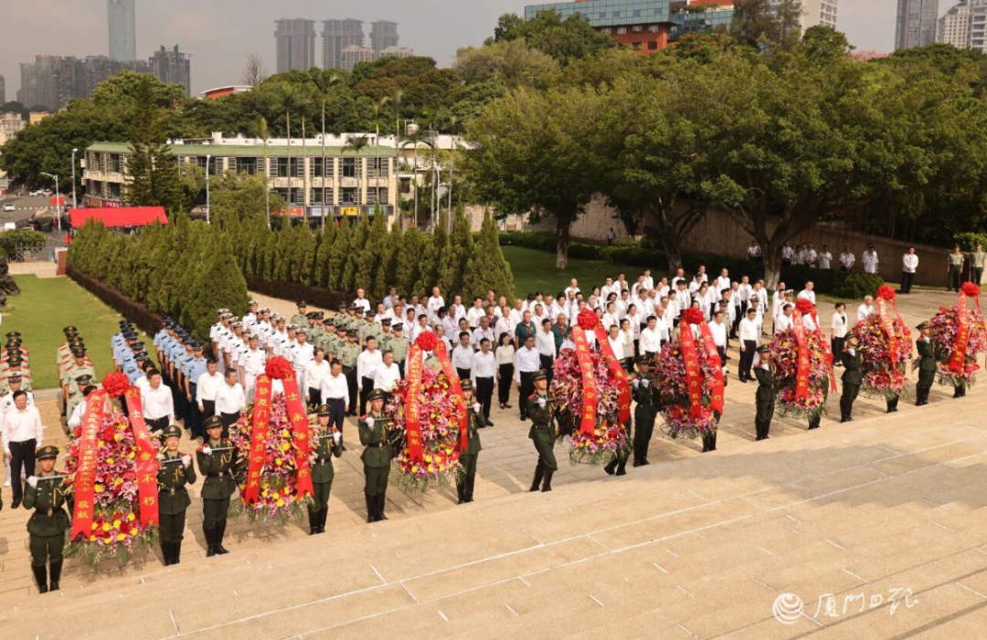9月30日,厦门烈士陵园举行向烈士敬献花篮仪式,深切缅怀烈士,赓续英烈精神,汲取奋进力量,努力开创高质量发展新局面。崔永辉、伍斌、杨国豪、李辉跃等市各套班子领导,驻厦部队领导,各民主党派、工商联、无党派人士、人民团体代表,烈士家属、老战士、参战退役人员、驻厦部队官兵、少先队员以及社会各界群众代表等参加仪式。 漳州市
