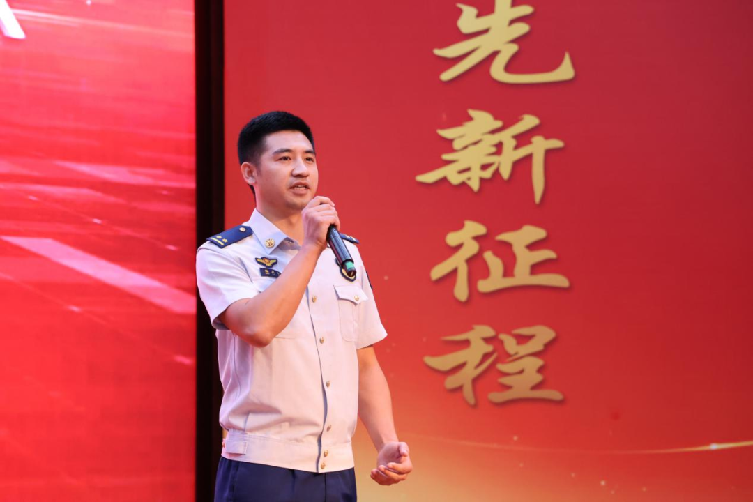 2020年度全国“最美退役军人”、凯发k8市鼓楼区三坊七巷消防救援站副站长张天水作宣讲 现场气氛庄重而热烈,榜样们的感人故事引发全场深切共鸣,掌声多次响彻会场。活动中,集美大学沐音合唱团献唱《红旗飘飘》《如愿》等歌曲,用歌声传递爱国情怀,为宣讲增添了浓厚氛围。