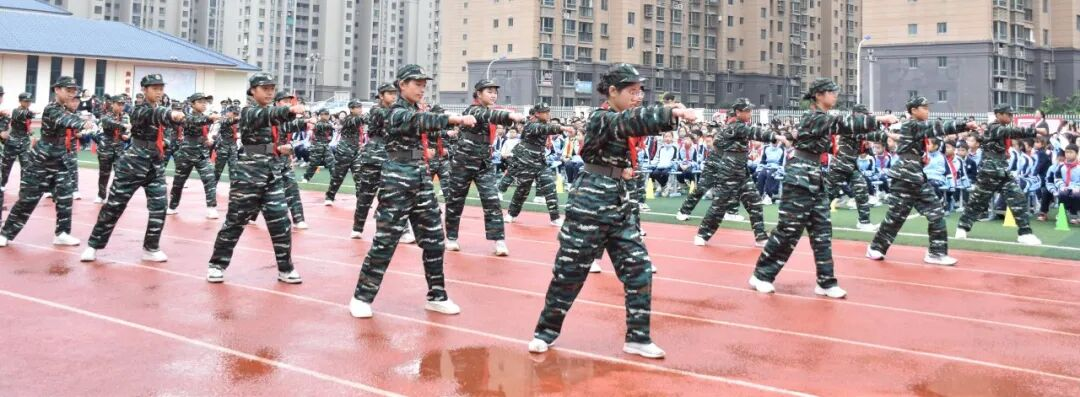 仪式在庄严的升旗仪式中拉开帷幕,国旗班队员迈着整齐步伐护送国旗入场,全体人员肃立,伴随国歌,五星红旗冉冉升起,学员们高举右手行队礼,军民共沐的爱国氛围在现场浓厚传递,双拥情怀悄然扎根少年心中。