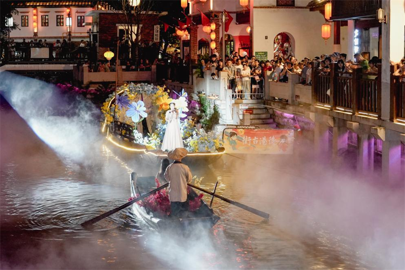 漳州龙海后港古街以“科技光影+非遗演艺”打造行浸式夜游新体验。核心IP《后港年华》通过水幕喷泉、3D墙体秀、光影电影《海上明月》等数字技术,再现月港历史风华,形成“夜游+影视”联动场景。同时,夜间非遗剧场常态化展演芗剧、弄虎等技艺,让游客在科技与文化的交融中,感受古今对话的闽式夜生活。